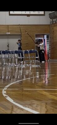 2年生が準備や紹介を行い、3年生が実際に弓を引きます。