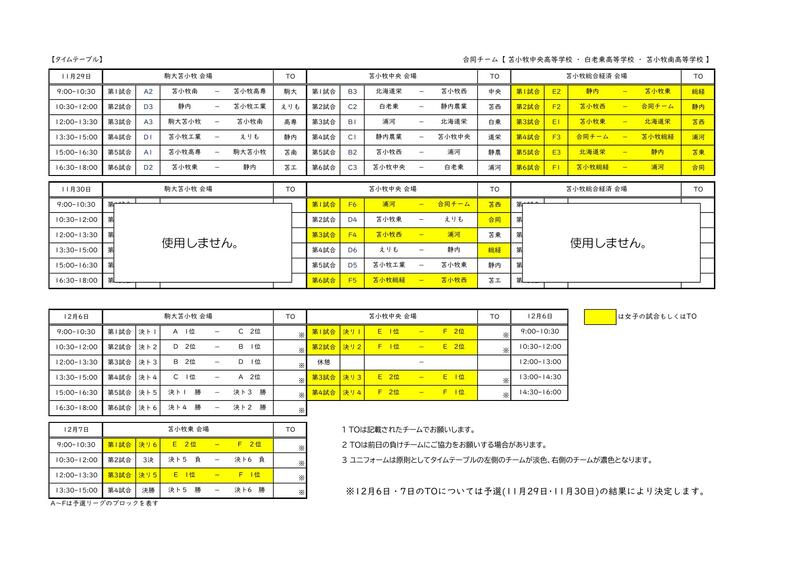 11/22には室蘭清水丘高校に来校いただいて、11/24には苫小牧東高校にお邪魔してそれぞれ練習試合を行いました。新人戦に向けた最終チェックとして戦術の確認や、チームとしてのゲームプランの遂行をテーマにゲームに臨みました。結果としてはまずまずといったところですが、ゲームを通して求めていたトランジションの速さや、ディフェンスの強度などはまだ十分とは言えず、あと一頑張りかなと思います。それでもしっかりとゲームをできる状態までは来ており、あと1週間をしっかりと過ごすことができれば、本番でもいいゲームができるのではないかと思います。お世話になった学校の皆様、ありがとうございました。