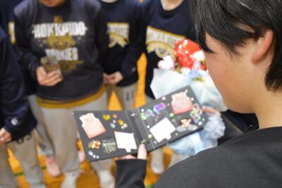 最後に卒業生の二人へ。卒業おめでとう。3年間よく頑張りました。一生懸命に生きて、幸せになってください。このチームはいつまでもあなたたちのチームです。またいつでも遊びに来てね。