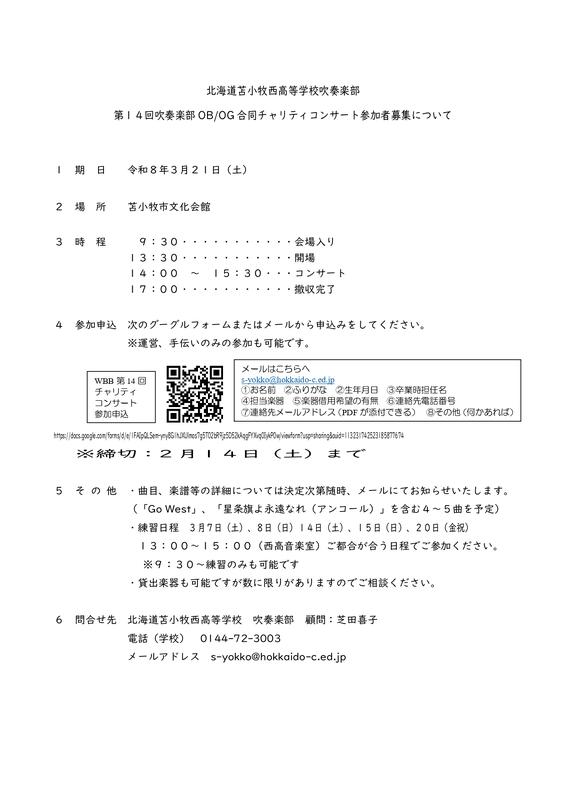 さて、3月に行われますチャリティコンサートですがコロナ禍になってから参加を制限させていただいておりましたが、今年度から幅広く参加者を募集したいと考えております。下記の要項をご覧いただき、是非多くの方に参加していただきたいと思っています。