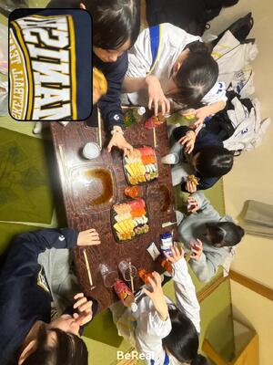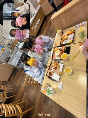1日目の夜ごはんはホテルでUber Eatsを頼んで食べました。ひとつの部屋で食べました。みんなたくさん話して楽しかったです!2日目はお昼にしゃぶ葉を食べました。自分たちの成長も感じられてとても楽しかったです。